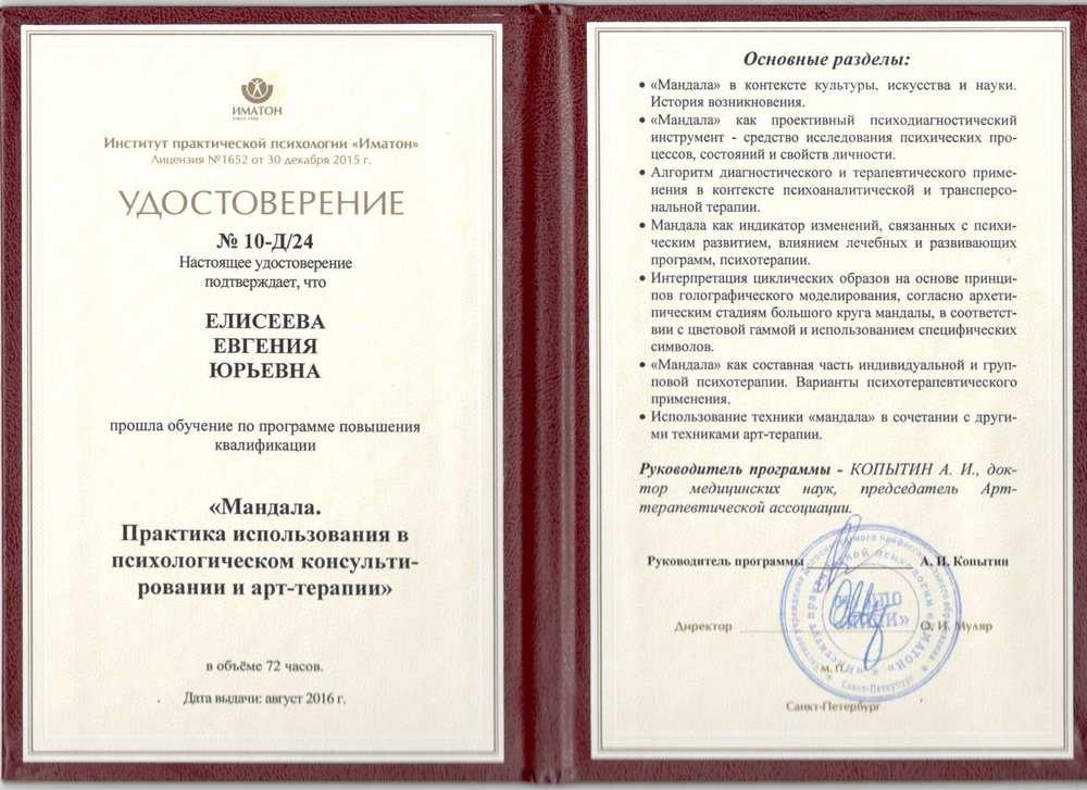 Кажется, я взрослый человек, позитивно мыслящий и понимающий, что психолог должен хвалить и поощрять. Но Евгения делает это так искренне и честно, что веришь ей. Очень понравился темп занятий, все четко, понятно. Восхищена и удивлена возможностями мандалы, их глубиной воздействия. Это еще и умение Евгении передавать материал и быть влюбленной в свою работу, в Мандалу.