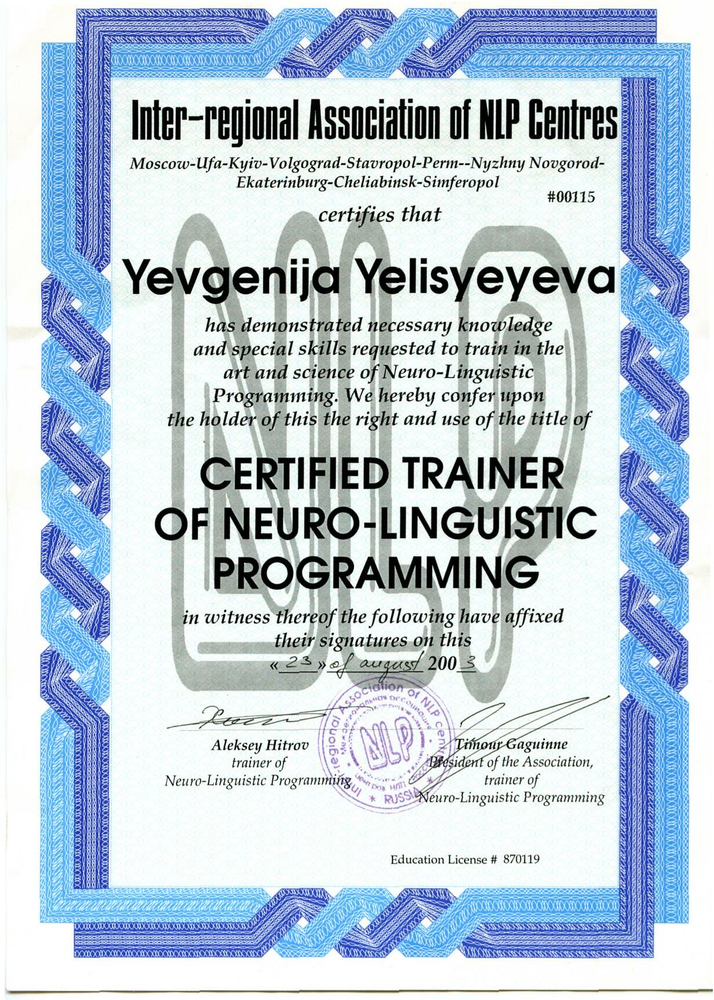 Никогда не слышала от Жени грубости, бранного слова, всегда ровный, спокойный и уверенный голос. Несмотря на то, что за спиной у Жени много тренингов и семинаров, она регулярно повышает свой профессиональный уровень, узнает что-то новое, применяет и с готовностью отдает людям.